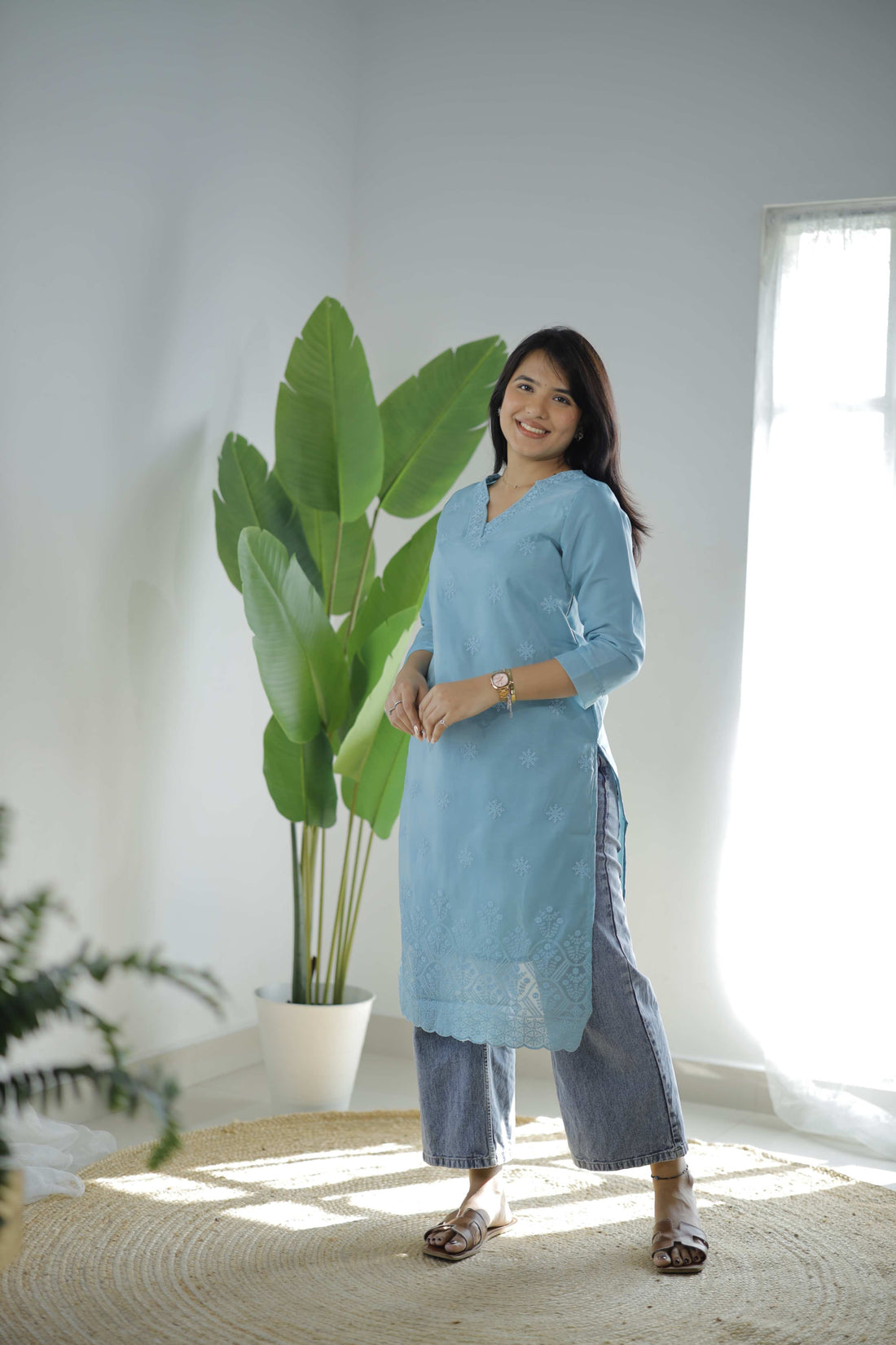 Fabric: Lightweight and breathable fabric for all-day comfort. Color: Pastel blueKurta: Pastel blue kurta with delicate...