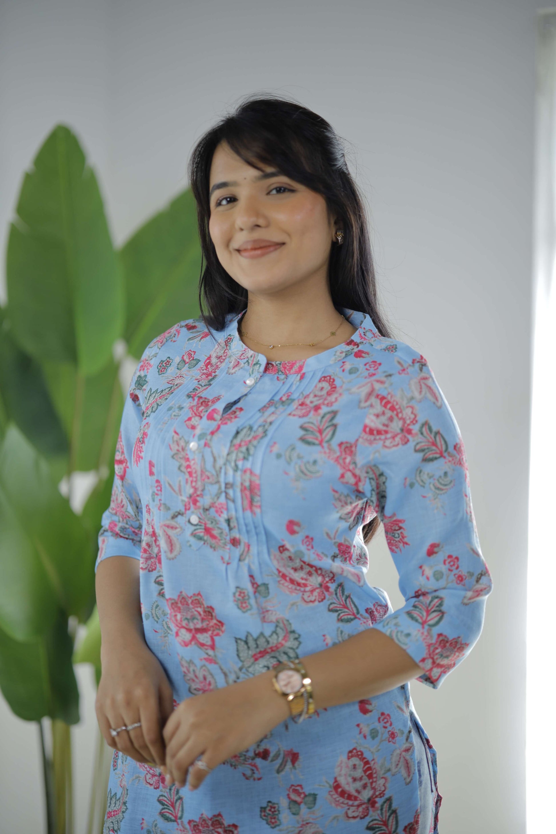 Kurta: Features a refreshing floral prints in vibrant tones for a cheerful and stylish look.