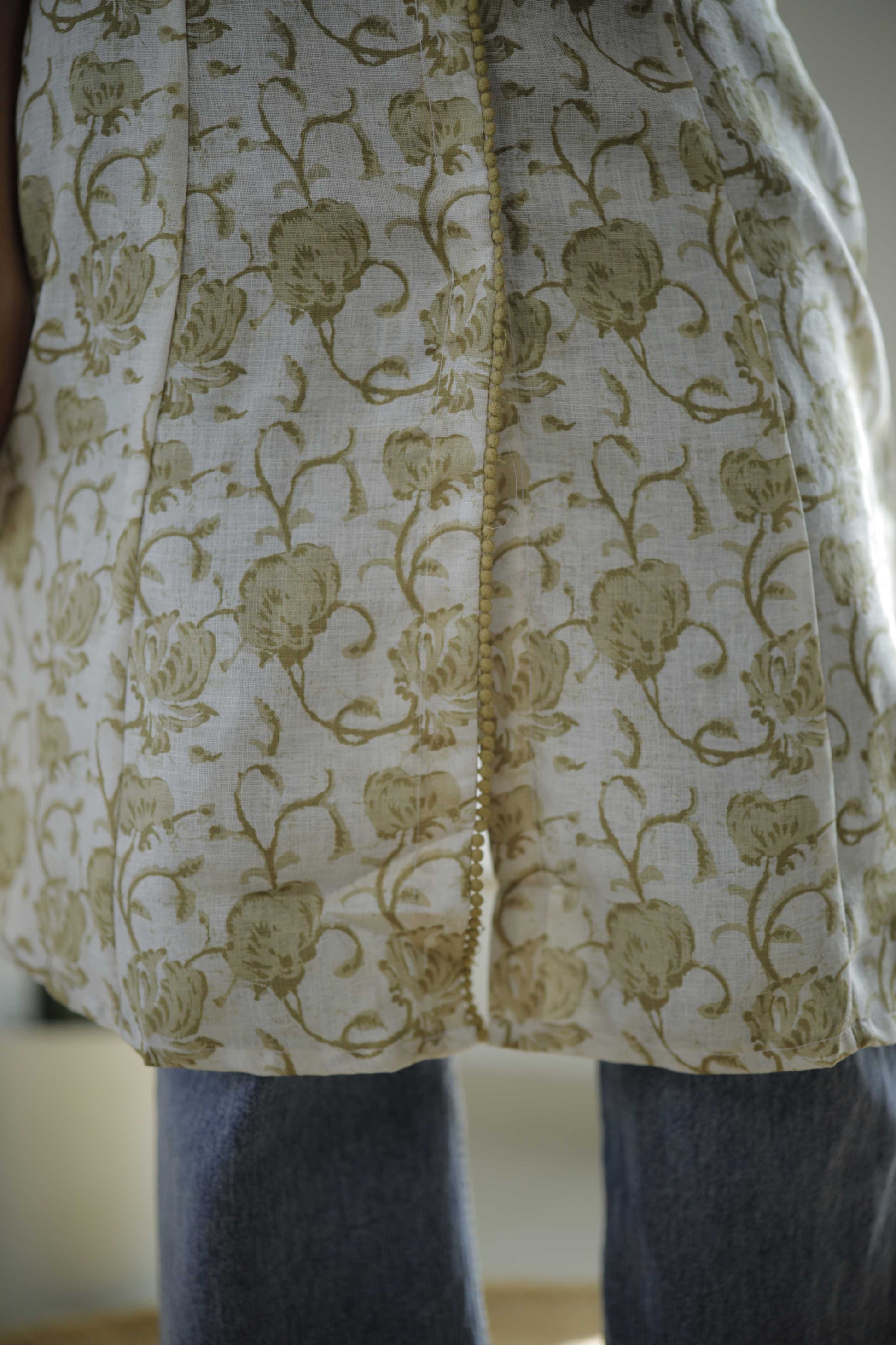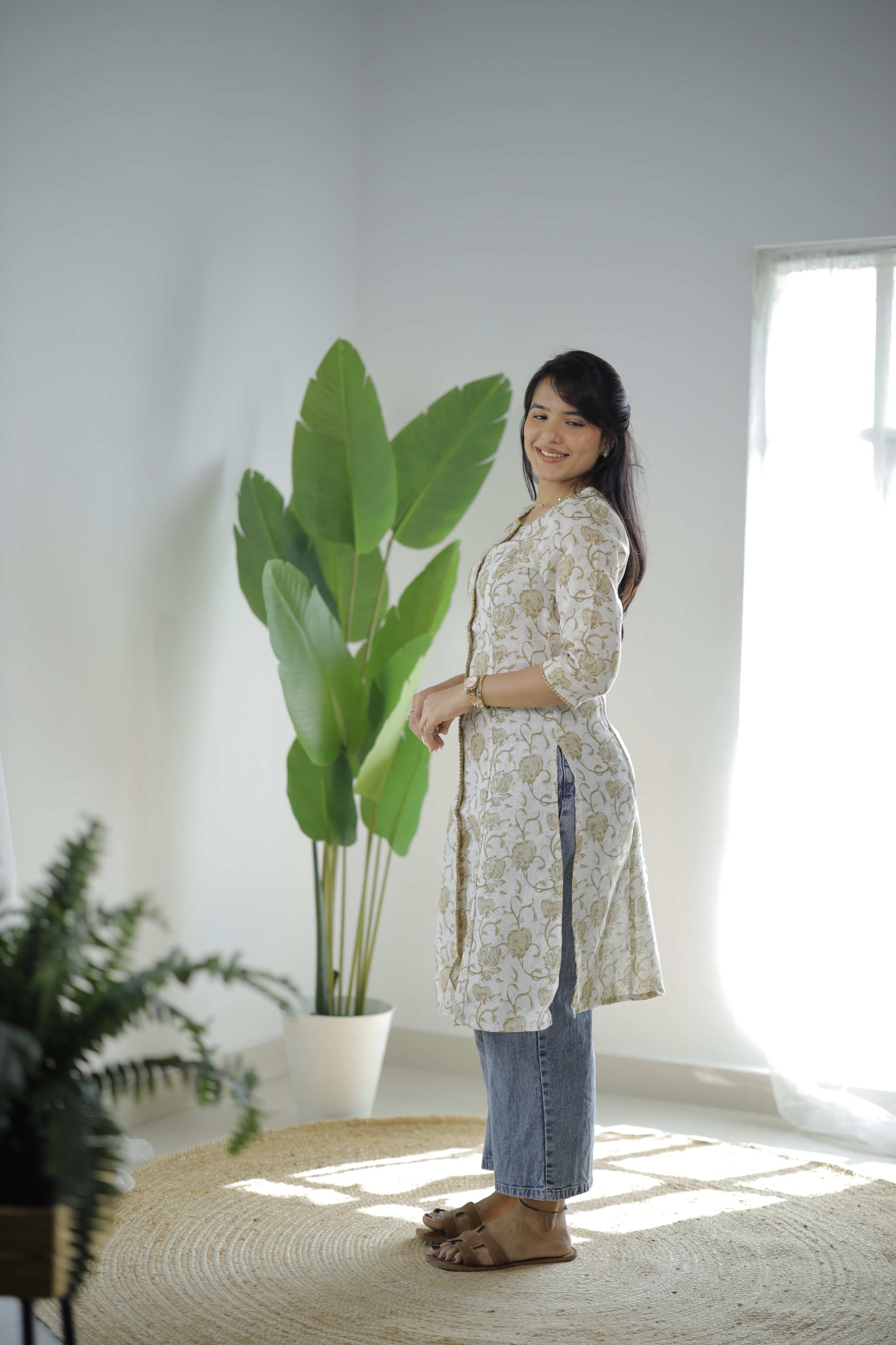Kurta: Subtle floral print in earthly tones for a classic and sophisticated look.