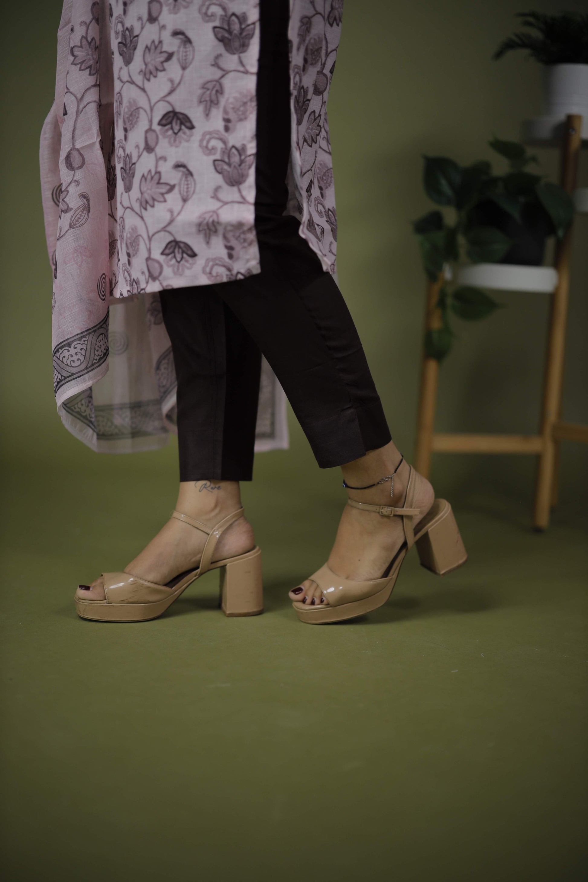 Dupatta: Matching pink dupatta with a coordinated floral print and a decorative border.